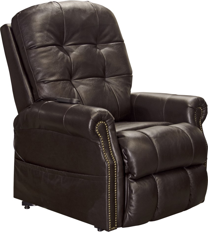 The Madison Chocolate Power Lift Lay Flat Recliner with Heat & Massage features a tufted back and a channeled chaise pad design. The top grain Italian leather/match paired with the comfort coil seating featuring Comfor-Gel create an extremely comfortable seat.