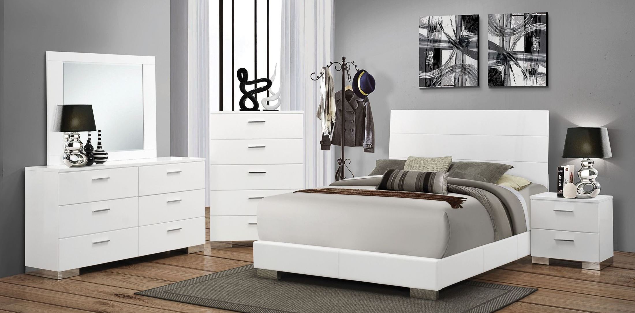 Light and airy, the Felicity collection turns your bedroom into a dreamy retreat. The glossy white finish, clean lines, and polished-chrome details breathe contemporary vibes that revitalize and soothe. Delight in the new energy and crisp feel of your sleep space with this Coaster® collection.