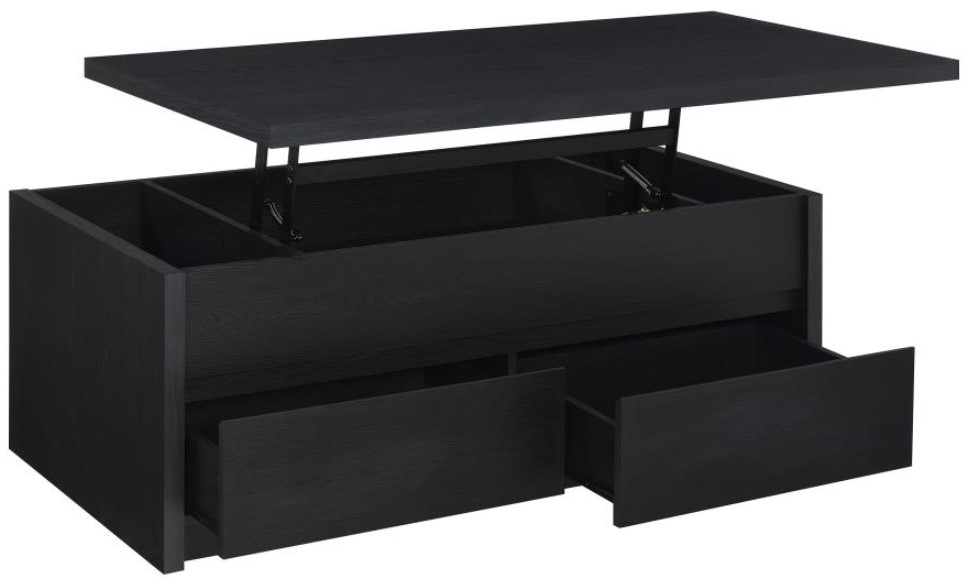 The Coaster® Knapp Black Lift Top Coffee Table combines functionality with modern style. The lift-top design reveals hidden storage, perfect for keeping items out of sight while still easily accessible. Its sleek black finish and sturdy construction make it a practical and stylish addition to any living room.Read More