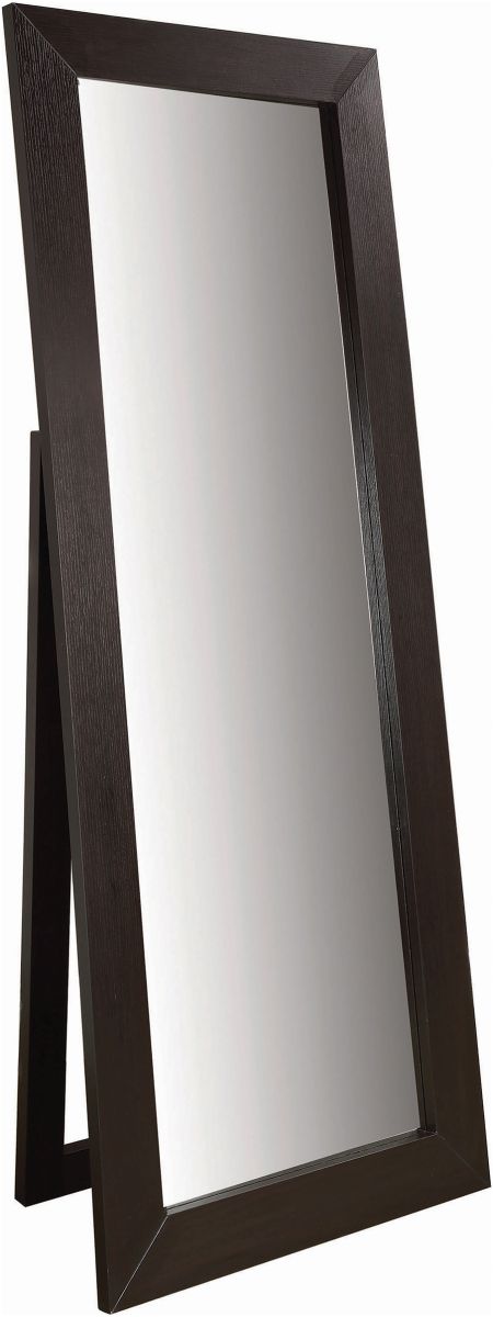 Bring function and fashion to a casual space. This floor mirror delivers an ideal angle for reflection as well as a stylish decor accent. Enjoy a bold, dark cappuccino finish frame with a back support.Read More