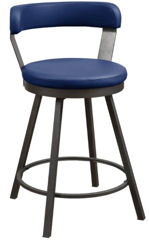 Perfectly styled for your casual dining space is the Appert Collection. This counter height chair features a dark gray metal base that serves to support the blue faux leather round swivel seat.Read More