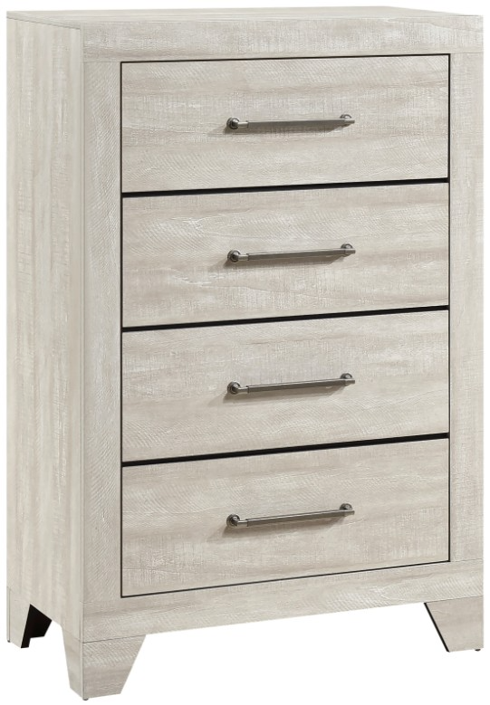 Featuring four smooth-gliding dovetail drawers equipped with durable metal-on-metal center glides, it provides ample vertical storage while maintaining a compact footprint. The sleek antique silver-tone bar pulls add a touch of modern refinement, complementing the clean lines of the design. Crafted from a blend of PU paper, wood, and engineered wood, this chest is a durable and attractive addition to any bedroom. Please note that assembly is required upon arrival.