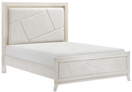 Bold geometrical styling is paired with unfettered modern lines to create the unique design of the Asteria collection. Antique white finish highlights the collection’s oak veneer. Asymmetrical routing fronts the Eastern King headboard panel for dramatic accent to the collection, while LED backlighting provides a gentle glow from behind the headboard’s inset panel.Read More