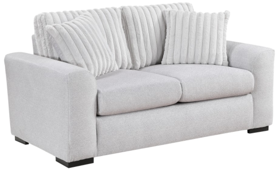 Create a cozy and stylish seating area with this two-tone gray loveseat, featuring a unique blend of textured microfiber and inviting corduroy fabrics. Built with a sturdy plywood frame, high-density foam padding over pocket coils, and reversible cushions, this loveseat offers both durability and exceptional comfort for two.Read More