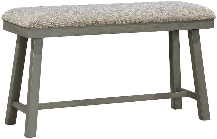 The industrial-inspired design that complements the transitional profile of the Auburndale Collection creates the perfect addition to your home’s casual dining space. The counter height bench provides functional seating to complement your available space, and features wood framing, a light gray finish over acacia veneer, and light gray textured fabric upholstered seat.Read More