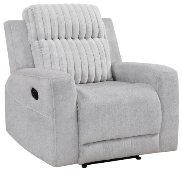 Experience the ultimate in comfort and style with this two-tone gray recliner, featuring a unique blend of textured microfiber and cozy corduroy fabrics. Built with a robust solid wood and plywood frame, metal reinforced seat, and foam padding over pocket coils, this recliner offers both durability and exceptional support.Read More