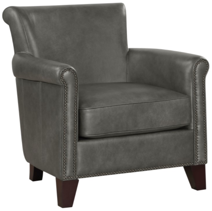 Serving to pair within your home’s available space, the Braintree Collection accent chair provides the additional seating you require. The subtle lines of the chair lend to its transitional style while nailhead trim lends classic traditional accent. The chair is covered in 100% top grain gray leather.Read More