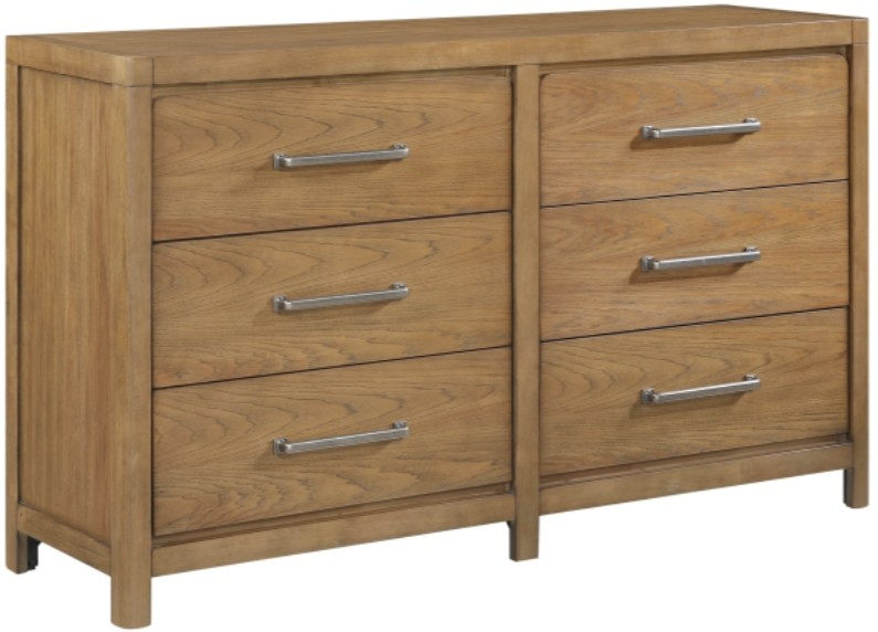 Organize your bedroom in sleek, modern style with this spacious six-drawer dresser. Crafted from a durable blend of hickory veneer, wood, and engineered wood, and finished in a warm light brown, this piece offers both exceptional aesthetics and lasting quality.Read More