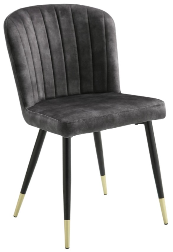 Comprised of classic elements of modern design, the Clemente collection blends clean lines, and complementing color, with hints of refined sophistication to create a table for your casual dining room. The charcoal-hued velvet seats of the collection’s side chair feature channel contoured tufting, and black-finished metal legs their leg tips capped with gold-finished metal accent.Read More