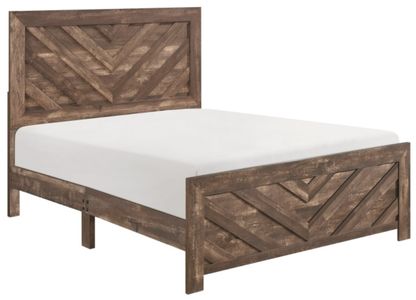 Modern lines and rustic styling are paired to create the look of the Corbin Collection. The 3D printed paper veneer’s texture is highlighted by a brown finish for a realistic wood look. A bold V-pattern defines the face of the queen panel headboard and footboard, further lending to the unfettered design of the collection.Read More