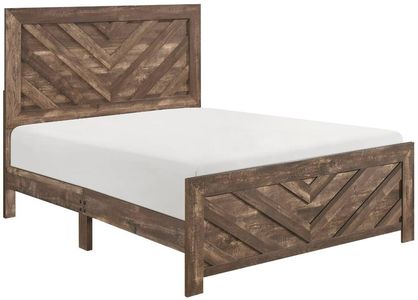 Modern lines and rustic styling are paired to create the look of the Corbin Collection. The 3D printed paper veneer’s texture is highlighted by a brown finish for a realistic wood look. A bold V-pattern defines the face of the full-size panel headboard and footboard, further lending to the unfettered design of the collection.Read More
