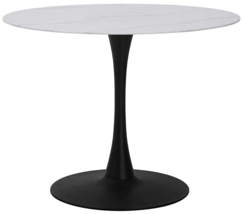 The classic look of the tulip base comprises the modern profile of the Cosimo collection. The black metal table base rises to support the marble print tempered glass tabletop, its white hue an elegant complement to your dining room’s décor.Read More