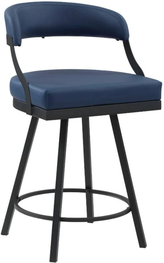Designed for your home’s modern aesthetic, the Crowley Collection provides a stylish seating option for mealtime and social activities. The 24-inch height chair features a contoured back, black metal framing, and blue faux leather seat.Read More