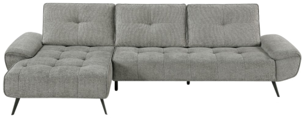 The left-facing chaise provides a comfortable lounging option, while the innovative dual-position backs allow for adjustable seat depth, ensuring optimal comfort for everyone. The sleek gunmetal finish metal legs add a touch of industrial chic and provide sturdy support. Perfect for apartments, condos, or modern homes, this sectional combines style, comfort, and functionality in one stunning piece.