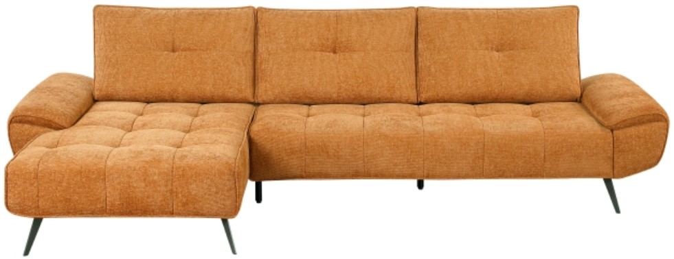 The left-facing chaise provides a comfortable lounging option, while the innovative dual-position backs allow for adjustable seat depth, ensuring optimal comfort for everyone. The sleek gunmetal finish metal legs add a touch of industrial chic and provide sturdy support. Perfect for apartments, condos, or modern homes, this sectional combines style, comfort, and functionality in one stunning piece.