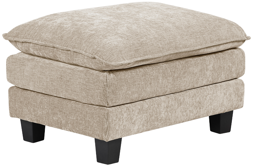 The design features high-density foam padding over pocket coils, ensuring exceptional comfort, resilient support, and long-lasting shape retention. Built on a durable plywood frame with chic exposed feet in a black faux wood finish, this ottoman promises enduring quality and a refined touch to your home, perfect for resting your feet, offering extra seating, or serving as a convenient surface.