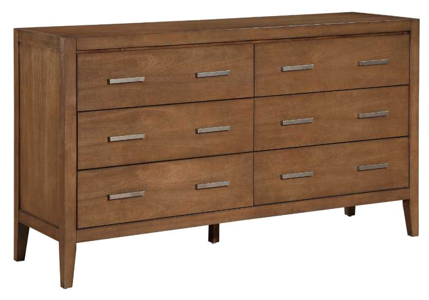 The Evans Collection’s transitional style utilizes hints of modern design to create a versatile aesthetic addition to your bedroom. The unfettered lines of the dresser present a classic profile. Antique brass-finished bar-pull hardware fronts the drawers of the case pieces. A light brown wire-brush finish is utilized to further the stylistic versatility of the collection.Read More