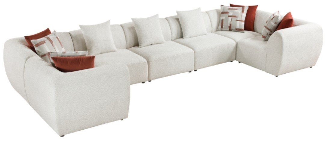 Create a stunning centerpiece for your living space with this beige chenille 7-piece U-shaped modular sectional, blending contemporary modern style with exceptional comfort and unparalleled flexibility. This expansive sectional, comprised of three armless chairs and four corner seats.Read More