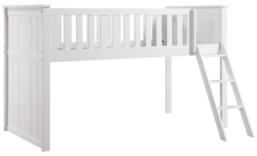 Maximizing sleep space is achieved with the stylish Galen collection. This transitional twin low-loft bunkbed is featured in a white finish making it an appropriate choice for a number of youth bedroom settings. An angled ladder provides easy access to the loft platform.Read More