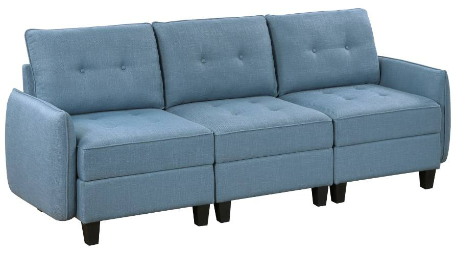 Create a versatile and stylish living space with this blue textured fabric modular sofa, featuring hidden storage beneath the seats for added convenience. The modular design allows for flexible arrangement and expansion, making it perfect for any living room.Read More