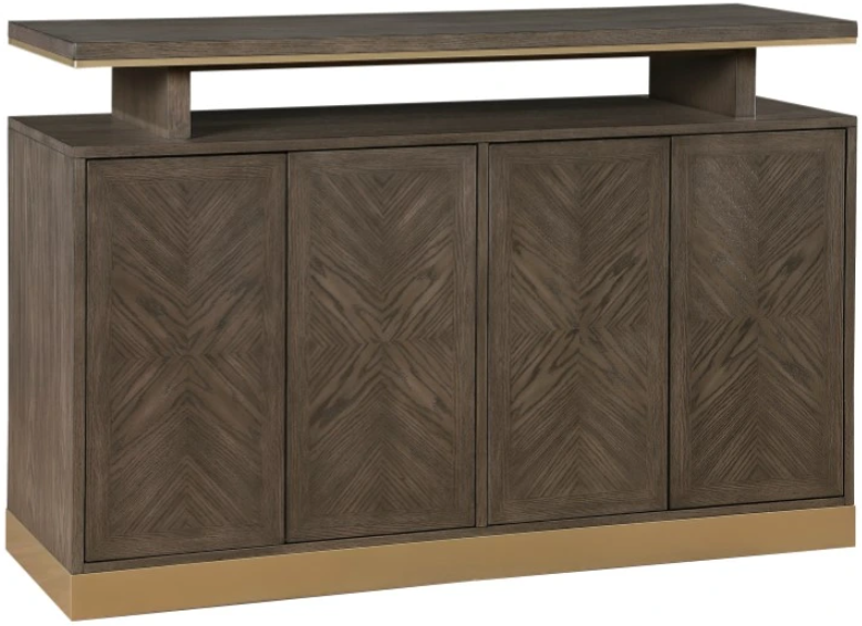 Curating a space that reflects your love for modern lines and desire for a sophisticated aesthetic becomes reality with the addition of the Griffin Collection. A brown finish highlights the sunburst oak veneer pattern, its rich hue complemented by the gold finish metal banding that graces the server’s floating top and base.Read More