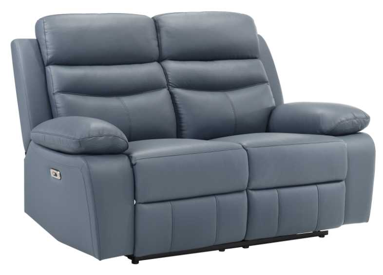 The subtle modern frame of the love seat is covered in 100 percent top grain leather where the body touches, with faux leather covering the remaining areas, its blue hue complementing your home’s décor.