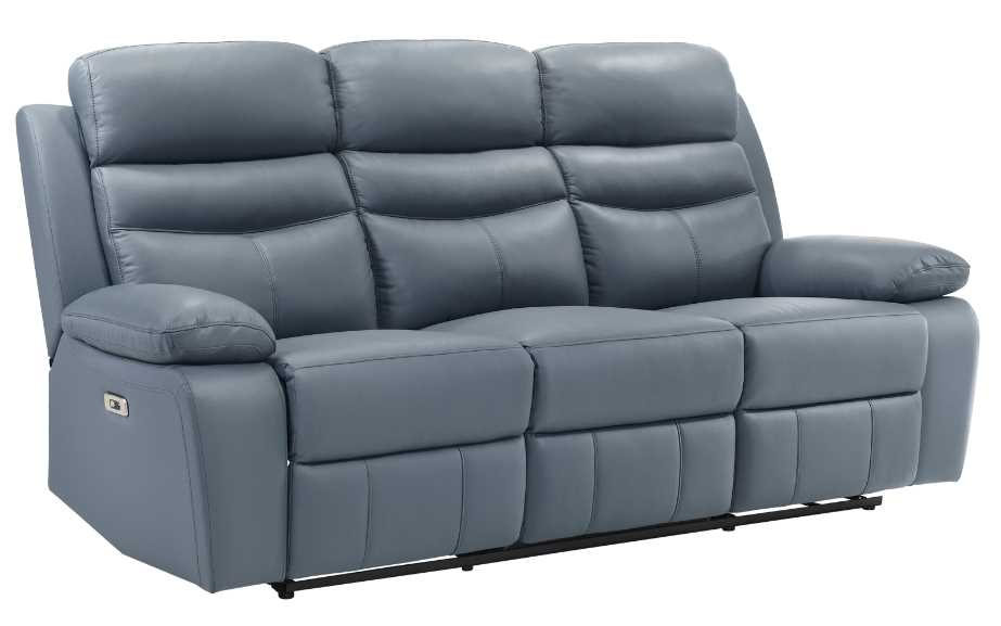 The subtle modern frame of the sofa is covered in 100 percent top grain leather where the body touches, with faux leather covering the remaining areas, its blue hue complementing your home’s décor.
