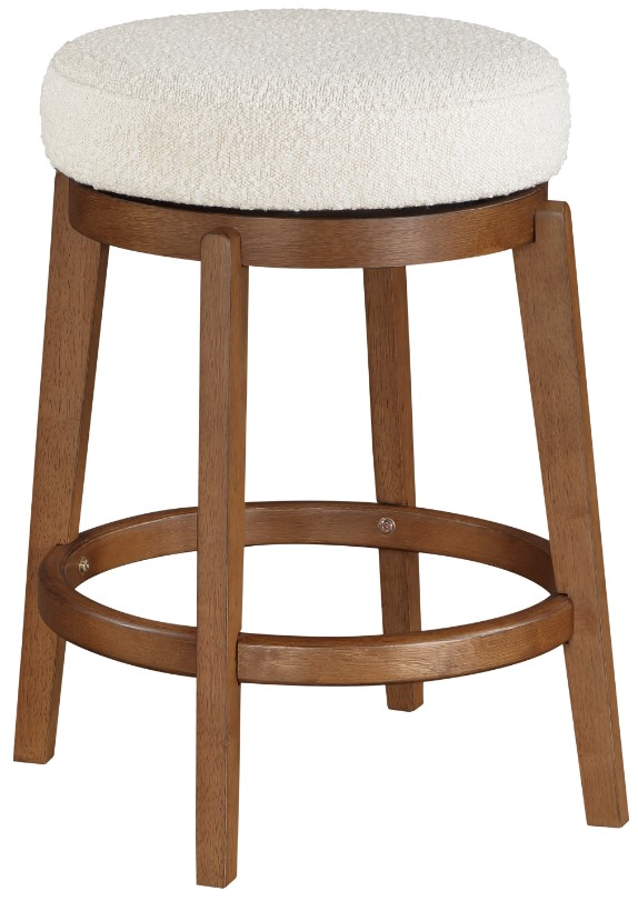 This stylish swivel counter height stool, crafted with a solid wood frame and a warm brown finish, offers a perfect blend of modern design and comfortable functionality for your kitchen island or bar area. Its plush boucle fabric upholstered seat provides an inviting and cozy seating experience.Read More