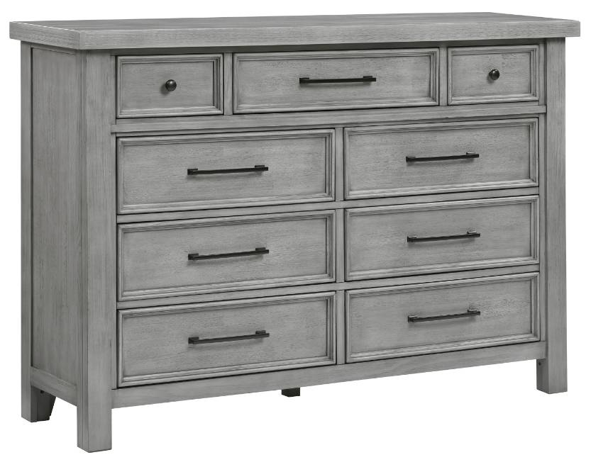 The transitional framing of the Logandale Collection allows for versatile placement within a number of classic bedroom decors, making it a perfect choice for your home. An antique gray finish is utilized over mango veneer for subtle highlighting of its distinct grain.Read More
