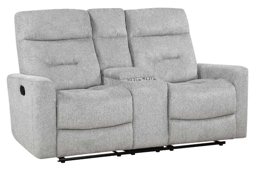 Your comfort is at hand in the design of the Lyndon Collection. The dual reclining ends of the love seat are engaged with a pull of the side-mounted tab. The love seat features a center console, with cupholders and hidden storage providing functional accent to your seated experience.Read More