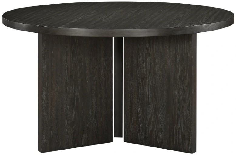 This contemporary round dining table, crafted from oak veneer, wood, and engineered wood with a striking ebony finish and textured wood grain surface, offers a sophisticated and intimate dining experience. Designed to comfortably seat four, its sleek circular top and minimalist base create a modern aesthetic that effortlessly elevates any dining space.Read More