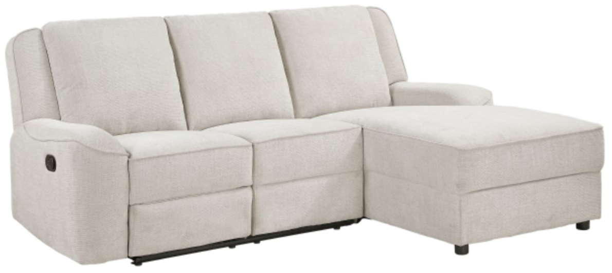 Maximize comfort and functionality in your living space with this ivory chenille reclining loveseat and chaise sectional. This two-piece set includes a left-side reclining loveseat with a drop-down console featuring cup holders, and a right-side reclining chaise, offering ample seating and relaxation options.Read More