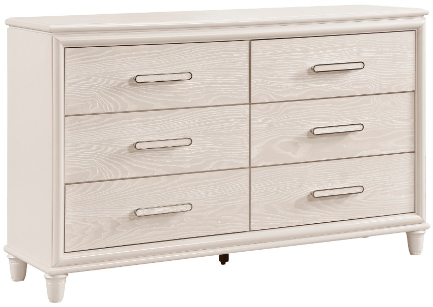 Maximize style and organization in your bedroom with this exquisite white wood dresser. Featuring a crisp white finish and elegant embossed panel drawer fronts, this dresser is constructed from durable wood and engineered wood for long-lasting use.Read More