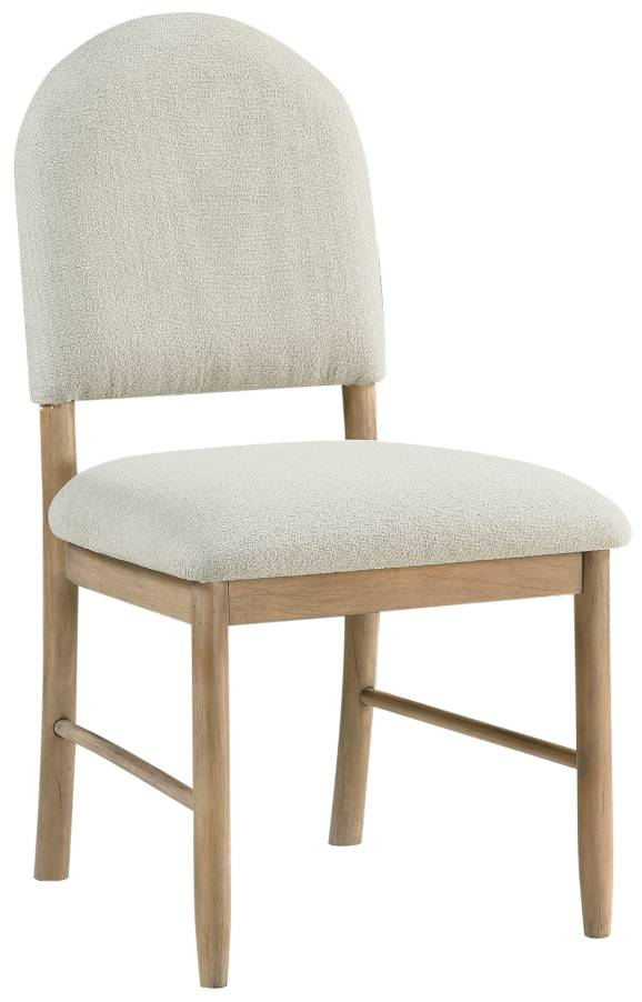 Add a touch of rustic elegance to your dining space with this beautifully crafted upholstered dining side chair. Featuring a solid wood frame with a wire-brushed power glaze natural finish, this chair highlights the wood's natural texture and grain. The upholstered back and seat cushion provide a cozy and inviting seating experience.Read More