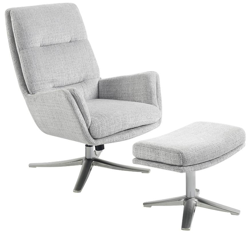 The smooth swivel mechanism allows for easy movement, while the included ottoman provides added relaxation. The sleek silver metal base adds a touch of modern elegance. With a 300lb weight capacity and easy assembly, this set is perfect for enhancing your living room, bedroom, or reading nook with a blend of style and practicality.