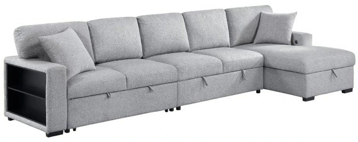 | Right Side Armless Chaise with Hidden Storage, 2-Seater's Backs and 2 Pillows, Charging Ports (9630GY-RC) | 60" W x 34.5" D x 18.5" H / 117.75 lbs. |