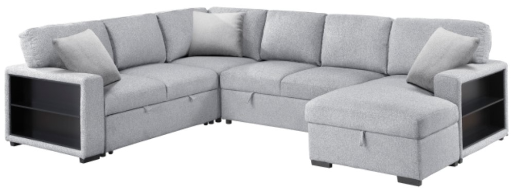 | Left Side 2-Seater with Pull-out Bed and Charging Ports, 2 Arms with Shelves (9630GY-2L) | 52" W x 36" D x 26.5" H / 175 lbs |