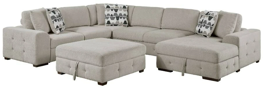 | Sectional Features | Tufted, Throw Pillows Included, Includes Storage |