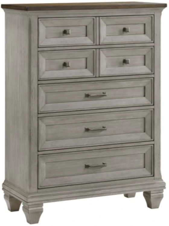 The five spacious dovetail drawers, equipped with smooth ball bearing glides, provide ample room for your clothing and accessories, while antique pewter tone knobs and bar pulls enhance the vintage charm. The sturdy construction and thoughtful design ensure both durability and functionality, making this chest a perfect addition to your bedroom ensemble. Assembly is required, allowing you to easily incorporate this piece into your space.