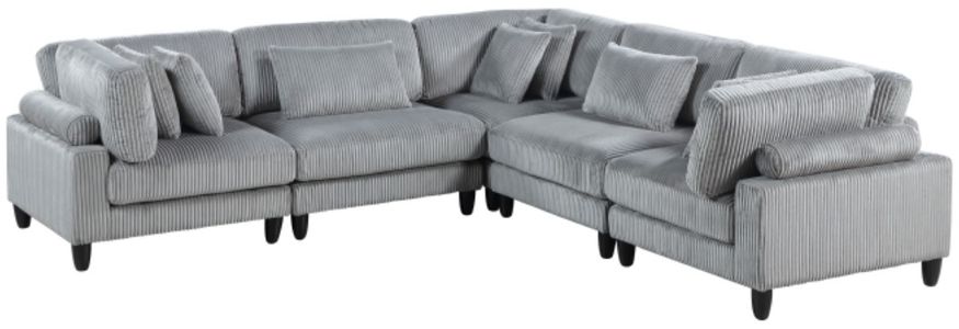Create a spacious and adaptable living space with this gray corduroy 5-piece modular sectional, designed for ultimate comfort and flexibility. This sectional boasts foam padding over pocket coils for exceptional support and soft corduroy fabric upholstery for a plush, cozy feel.Read More