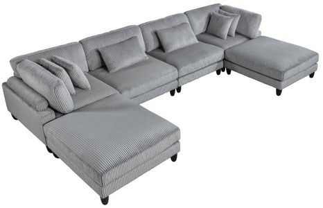Create a versatile and comfortable living space with this gray corduroy 6-piece modular sectional, featuring a single ottoman for added relaxation and configuration options. The modular design, including two corner seats, two armless chairs, and two ottomans, allows for numerous arrangements to perfectly fit your room and lifestyle.Read More