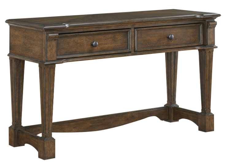 Add a touch of timeless elegance and functional style to your entryway or living room with this traditional sofa console table. Expertly crafted from a blend of cherry veneer, wood, and engineered wood with a rich brown finish, this piece features a classic design with beautifully tapered legs and a sturdy stretcher base.Read More