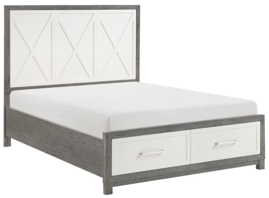 Maximize both style and storage in your bedroom with this Full Size, two-tone platform bed, featuring a unique ivory and gray finish crafted from okume veneer, wood, and engineered wood. The footboard boasts two dovetail drawers with smooth ball-bearing glides, providing ample space for clothing and linens.Read More