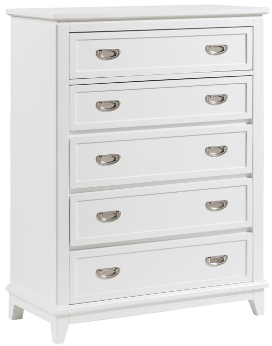 Add stylish and efficient storage to your bedroom with this white 5-drawer chest. Crafted from wood with a sleek white finish, this chest features five dovetail drawers with smooth ball-bearing glides for easy access to your clothing and belongings.Read More