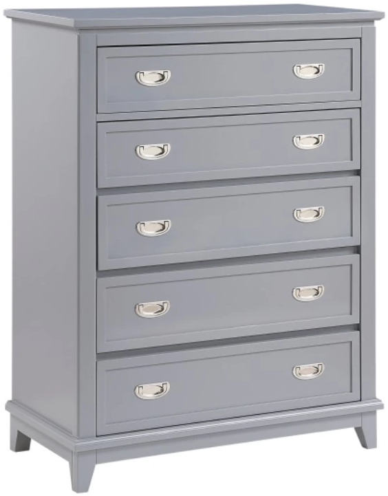 Add stylish and efficient storage to your bedroom with this gray 5-drawer chest. Crafted from wood with a sleek gray finish, this chest features five dovetail drawers with smooth ball-bearing glides for easy access to your clothing and belongings.Read More
