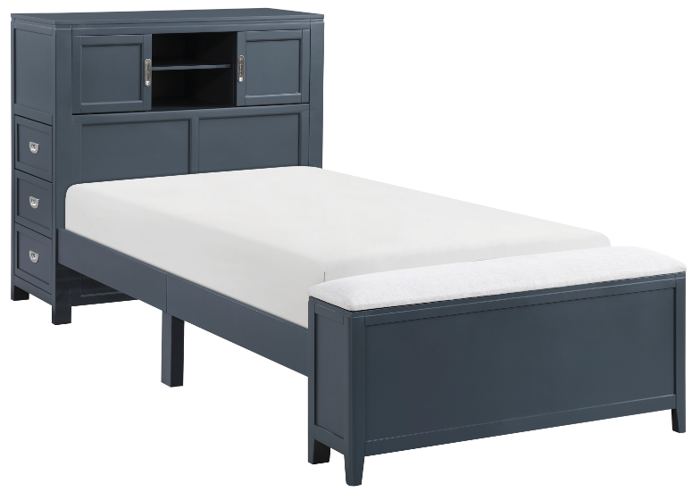 Maximize your child's bedroom space with this multifunctional navy blue bookcase bed, designed for both style and practicality. Crafted from wood with a sleek navy blue finish, this bed features a bookcase headboard with a hidden desk and foam-cushioned stool, perfect for study or creative activities.Read More