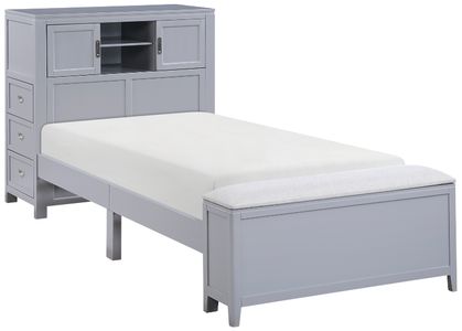 Maximize your child's bedroom space with this multifunctional gray bookcase bed, designed for both style and practicality. Crafted from wood with a sleek gray finish, this bed features a bookcase headboard with a hidden desk and foam-cushioned stool, perfect for study or creative activities.Read More