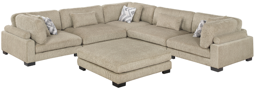 The armless chair features plush cushioning and comes with matching lumbar pillow for enhanced comfort. The plush ottoman serves as a multipurpose addition to any room, perfect for use as a footrest, extra seating, or as an integral part of a larger sectional configuration. The Tinley Collection sectional is ideal for those looking to personalize their home decor with functional, stylish pieces.