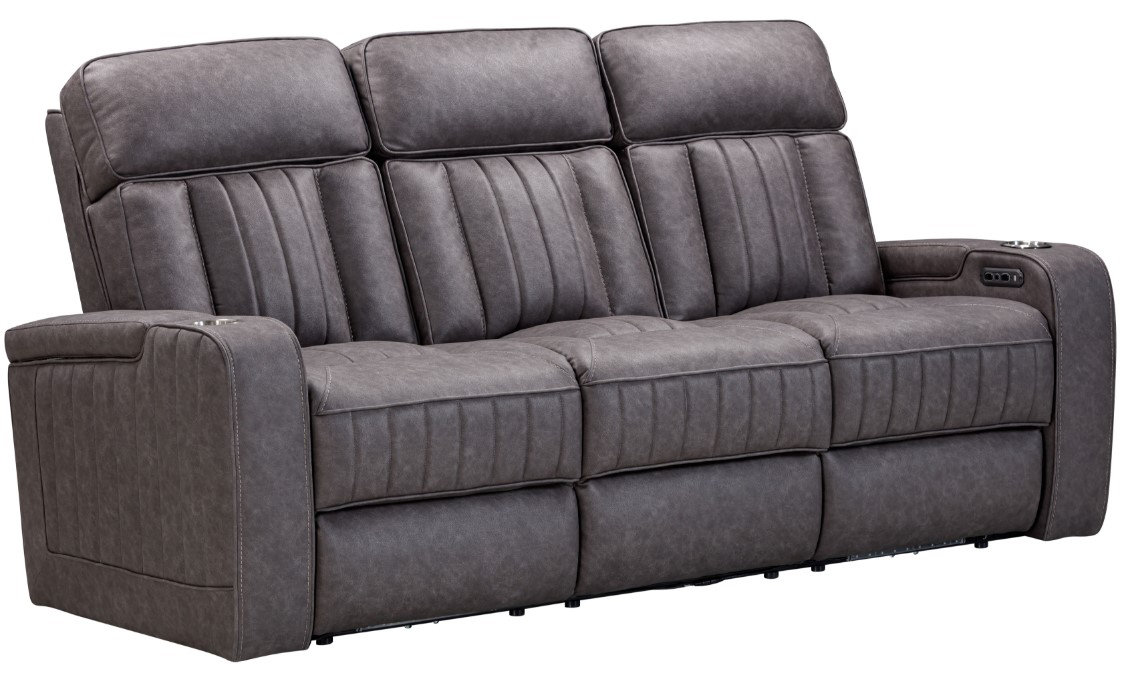Spice up your movie nights with this power sofa with a drop-down table. Each power seat features armrest storage and independently operating power headrests for personalized comfort. Equinox's sofa features an ultra-convenient drop-down table in the back of the middle seat, offering cup holders, charging, and overhead lights alongside its table surface space.Read More
