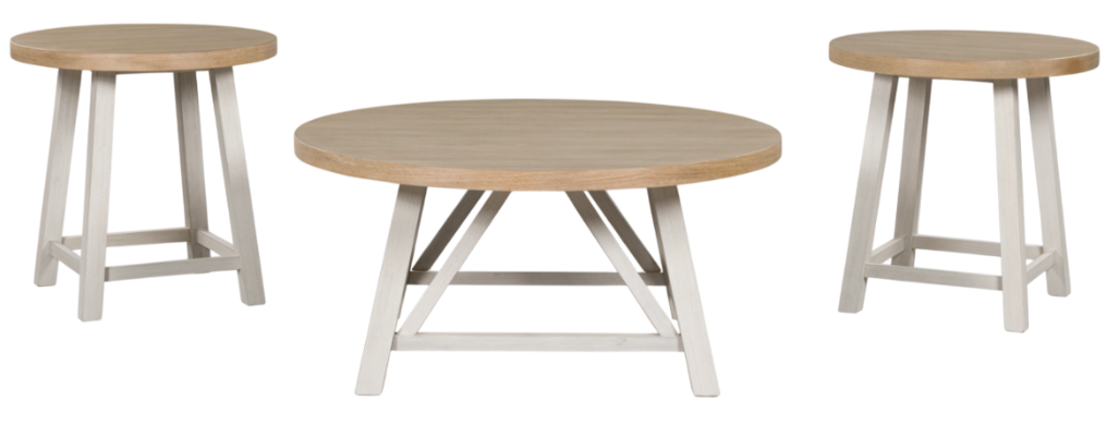 Invite easy-breezy style in with this occasional table set. Complete with a coffee table and matching end tables, the stylish two-tone set fits right into modern farmhouse and coastal settings. Simply stage and arrange around your existing furniture—their rounded design pairs well with smaller sofas and sectionals, so you can make the most of your space.Read More